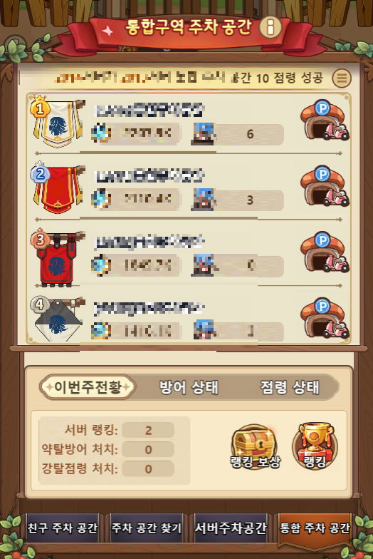 다른 서버에 주차장을 점령하면 본인의 서버로 가져오게 되며, 서버 랭킹에 따라 보상이 따라오는데,